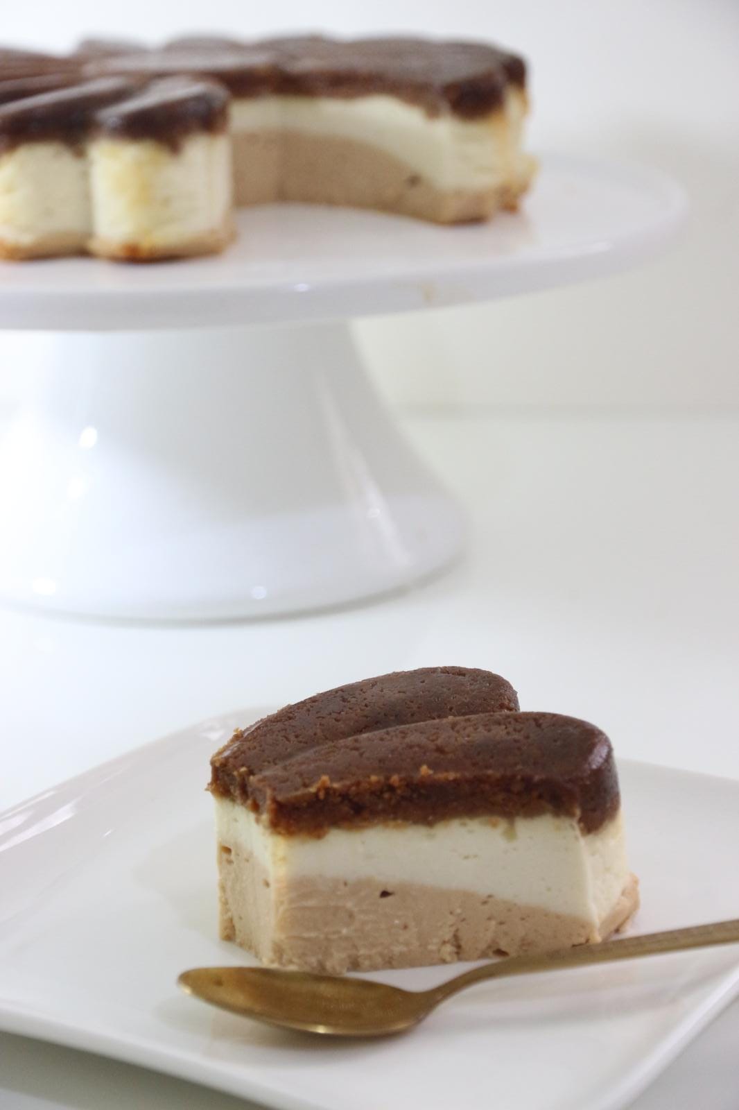 לאחר שהתנור התחמם מוציאים מהקפאה שופכים את הבלילה עם ריבת החלב ומכניסים לתנור.