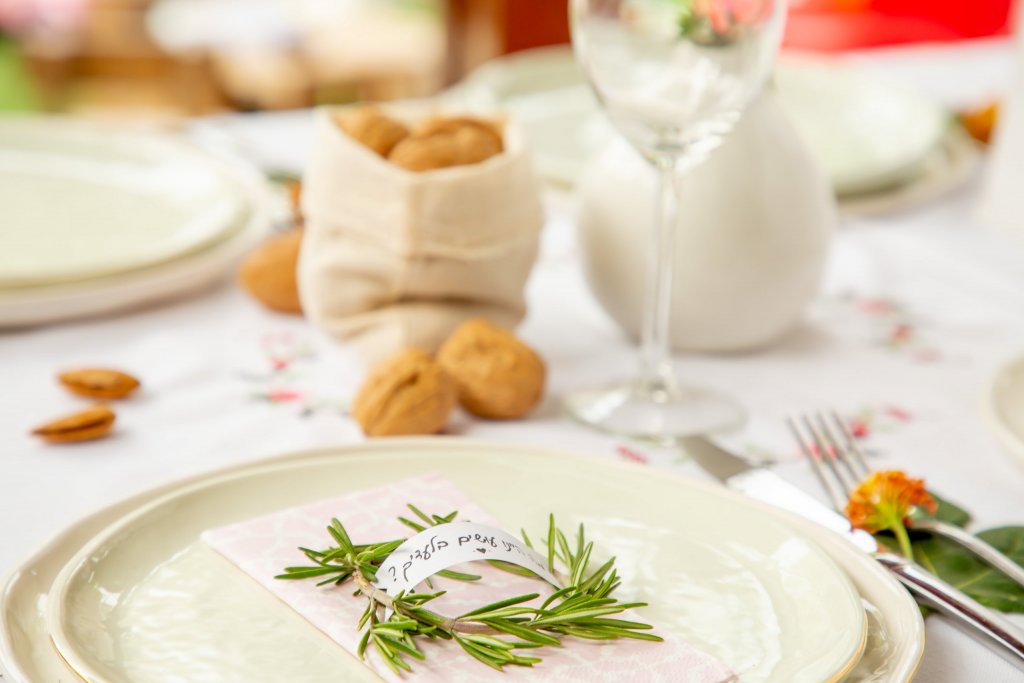 לקחנו ענף רוזמרין, קשרנו אותו בחוט, הנחנו הצלחת ומעליו הנחנו חבק – איחול שונה ומיוחד לכל אחד מהמשתתפים