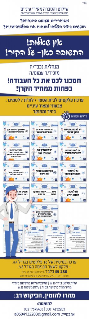 ומכאן ניתן מענה יעיל וחיוני, מענה שחוסך זמן עצום ומאמץ רב ע"י פלקטים מאירי עיניים הכוללים בצורה ממוקדת את כל ההנחיות הנדרשות ממשרד החינוך והבריאות בחזרה לשגרת הלימודים.