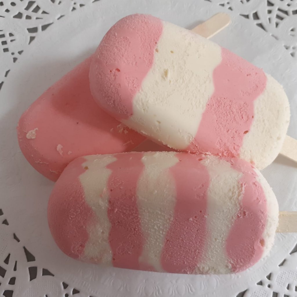 מעבירים כל קצפת לשקית זילוף, מזלפים לרוחב במתכונת פעם וורוד ופעם לבן. דופקים היטב את התבנית כדי שהקצף יהיה עמוק בתוכה. להכניס את מקלות הארטיק במקום המיועד, ולהקפיא למשך לילה במקפיא.