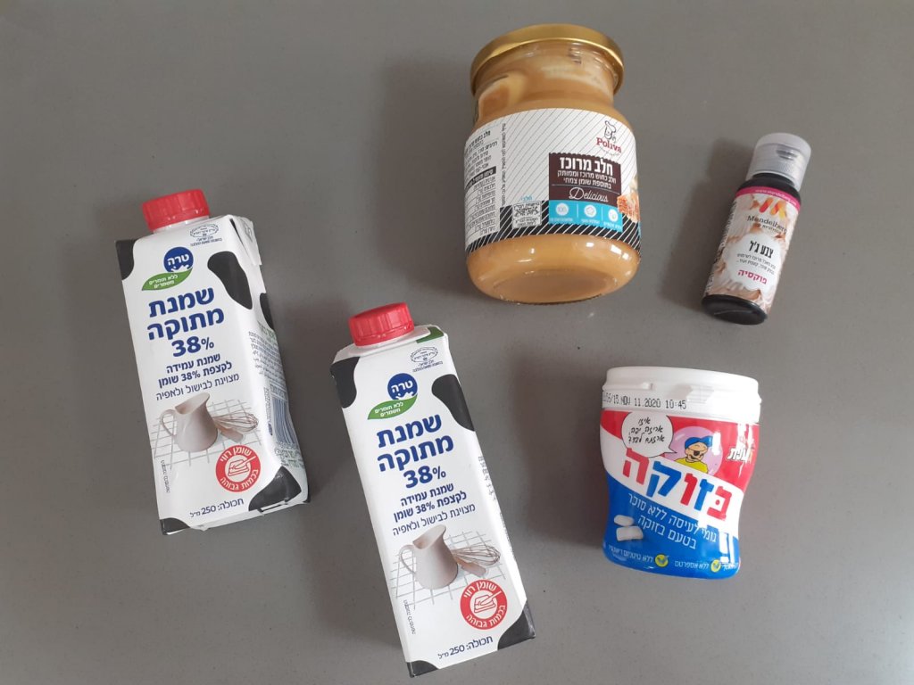 מחממים בסיר 250 מ"ל שמנת מתוקה, לאחר שמגיע לרתיחה להוסיף את המסטיקים ולערבב עד להמסה של המסטיקים.
