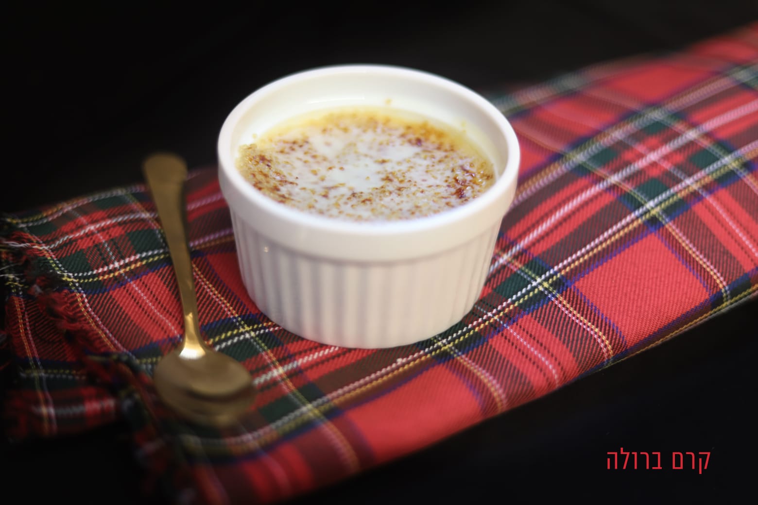 לפני ההגשה מפזרים סוכר בשכבה דקה ואחידה על כל מנה ומשחימים בברנר או בתנור שחומם למצב גריל. מגישים מיד.