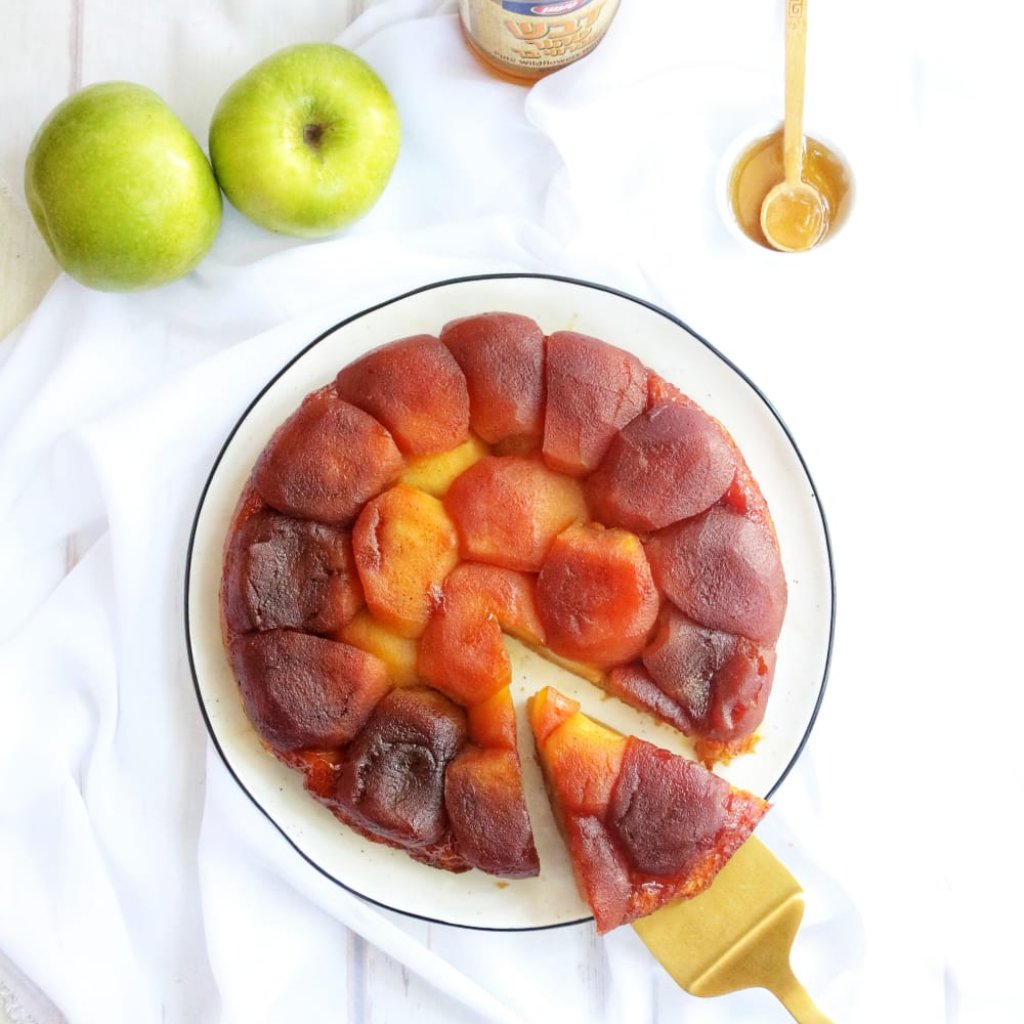 נשפוך כמה כפות מהרוטב על התפוחים.