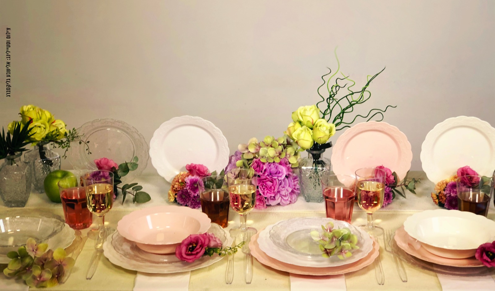 שולחן הכל כלול בעיצוב מושלם ואיכותי: מפה, צלחות, קעריות , סכו"ם, כוסות שתיה וכוסות יין. הכל בפנים! לא צריך לשבור את הראש ולא להסתובב בחוץ ללקט!
