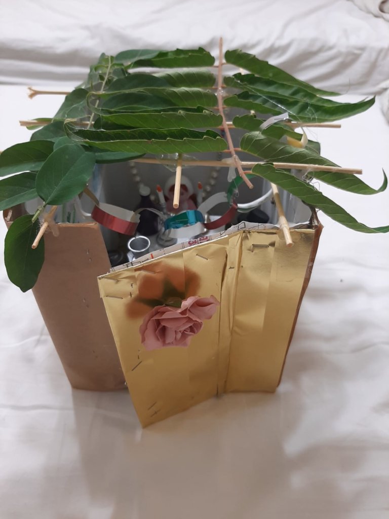 חתיכת בד לבן אפשר גם דפים לבנים עליהם מקשטים