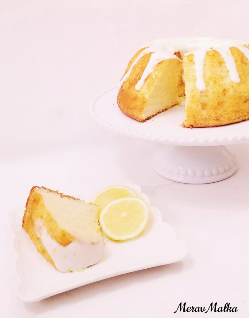 להפריד ולהקציף את החלבונים עם סוכר. להוסיף לימון, קמח, אבקת אפיה ומים או מיץ לימון.