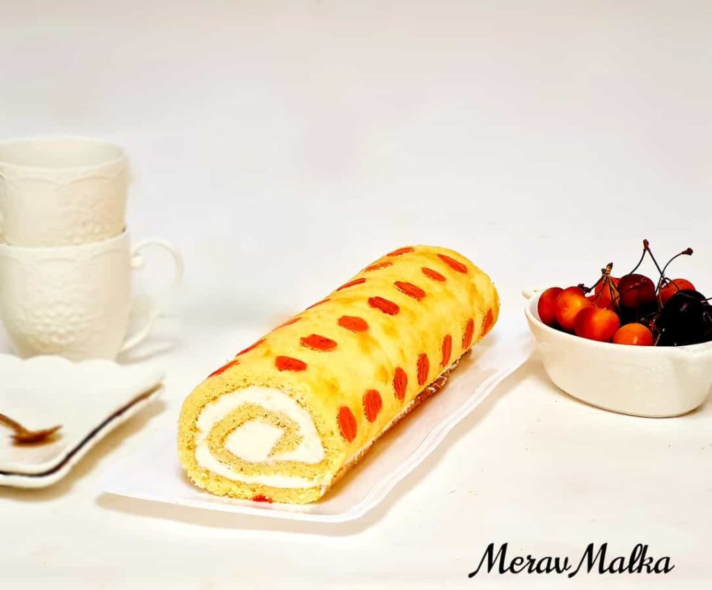 *לפתוח את הרולדה להוסיף את הקרם ולגלגל חזרה.