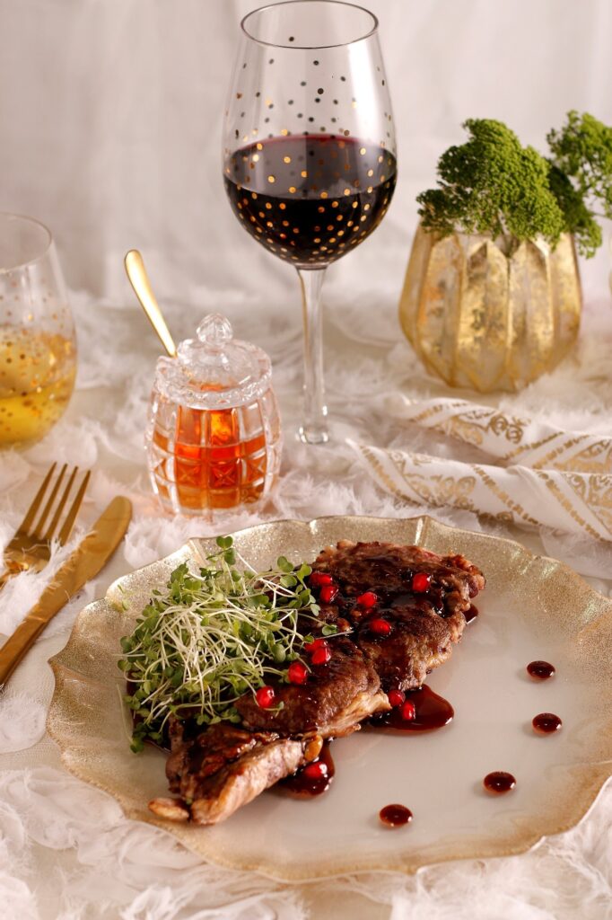 - מחממים את הרוטב, מסדרים את הסטייקים בצלחת, יוצקים את הרוטב החם, מקשטים ומגישים מיד.