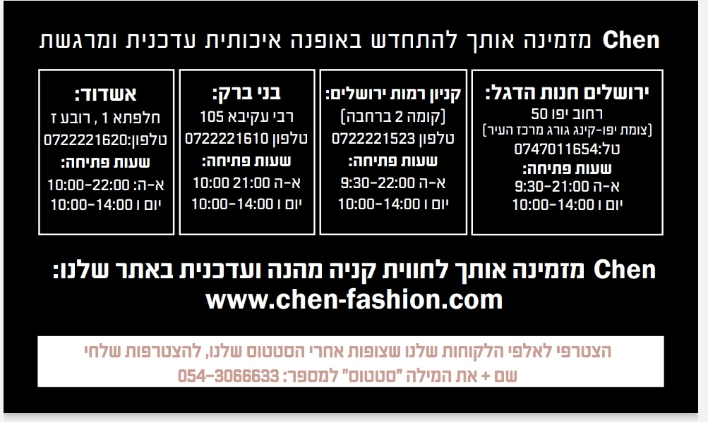 הצטרפי לאלפי הלקוחות שכבר עוקבות אחרי הסטטוסים שלנו בווטסאפ להצטרפות ויצירת קשר בווטסאפ בלחיצה כאן או כתבי לנו וואטסאפ למספר: 0543066633 צייני שאת גולשת של אתר קול כבודה:)