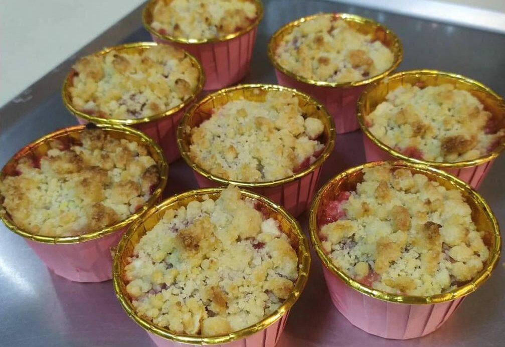 בתבניות אלומיניום קטנות מניחים מעט מהקרמבל