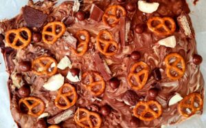 ממיסים את השוקולדים 160 מעלות 10 דקות מערבבים מוסיפים בייגלה שוקולדים וכל מה שאוהבים.
