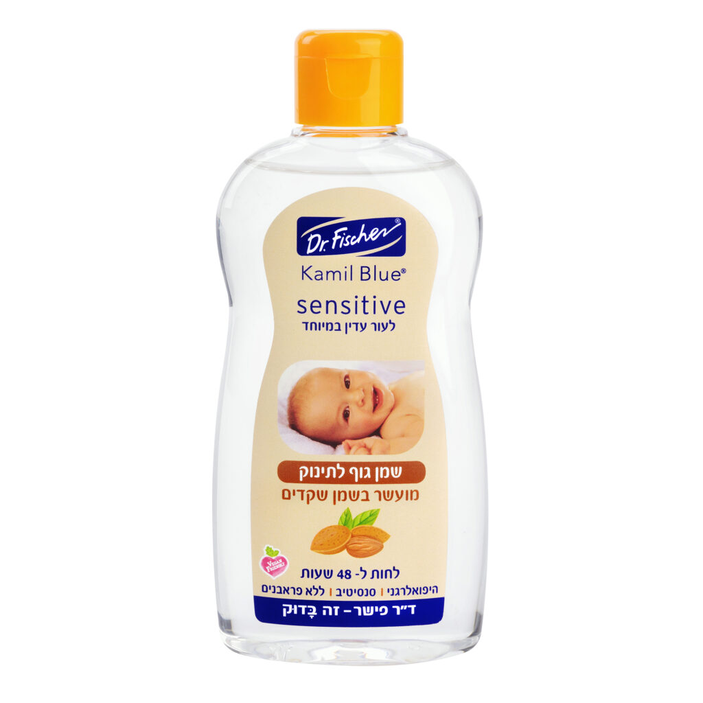 קמיל בלו סנסטיב שמן גוף לתינוק המועשר בשמן שקדים מכיל שמנים ותמציות אשר מעשירות את עור התינוק בלחות לה הוא זקוק, נספג בקלות ובמהירות ומותיר את העור חלק ורך למגע. שמן הגוף לתינוק הינו היפואלרגני, ועבר גם מבדק סנסטיב המעיד על התאמה לעור עדין ורגיש במיוחד. הנוסחה הייחודית איננה מכילה פראבנים, סיליקונים, חומרים משמרים, SLS , SLES, והיא מוצעת בריח עדין לחוויית שימוש נעימה במיוחד.