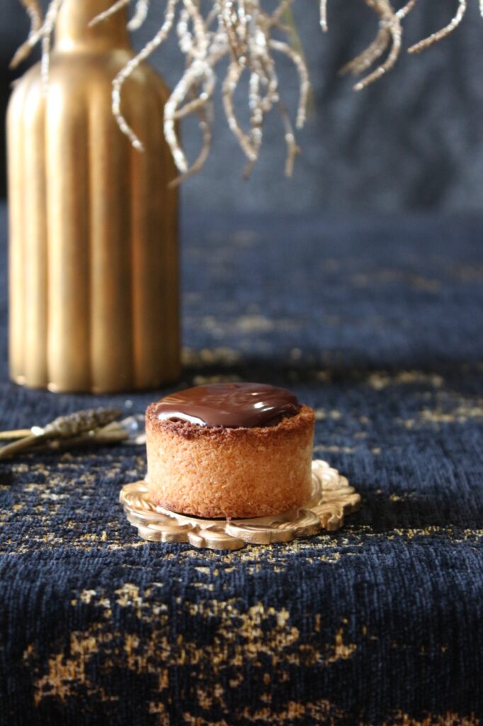 ממיסים את השוקולד עם שאר המרכיבים וטוחנים עם בלנדר מוט לקבלת ציפוי אחיד ומבריק. בעזרת סכין מחליקים/ מנסרים את פני הטארט בזהירות. מעבירים את הציפוי לשקית זילוף עם חור קטן ומזלפים מלמעלה.