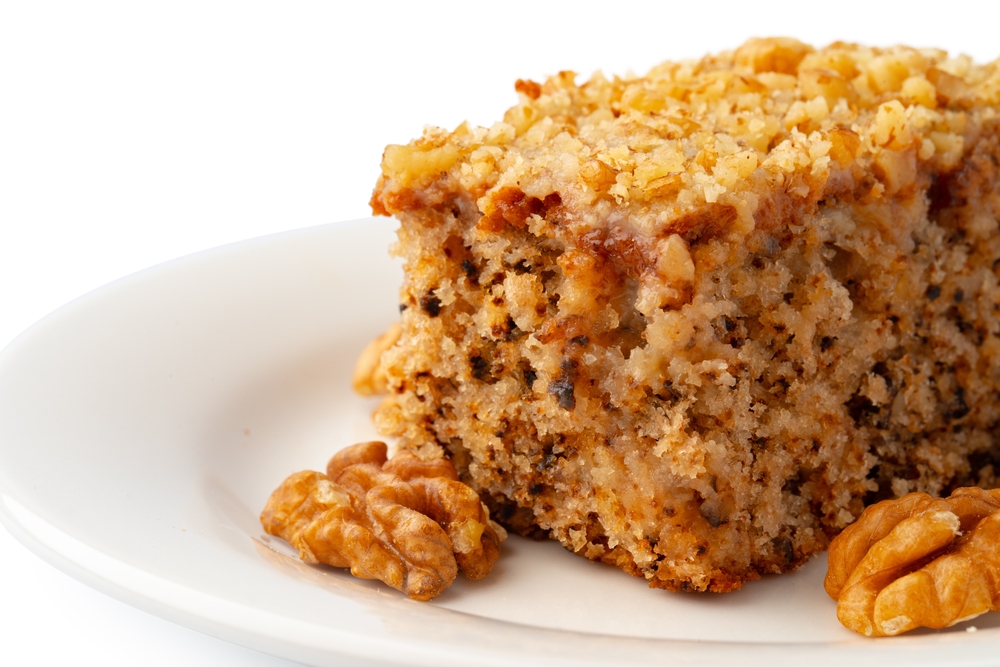 ממיסים את השוקולד ומוסיפים את הנס קפה, מורחים על העוגה ומפזרים מעל את האגוזים.