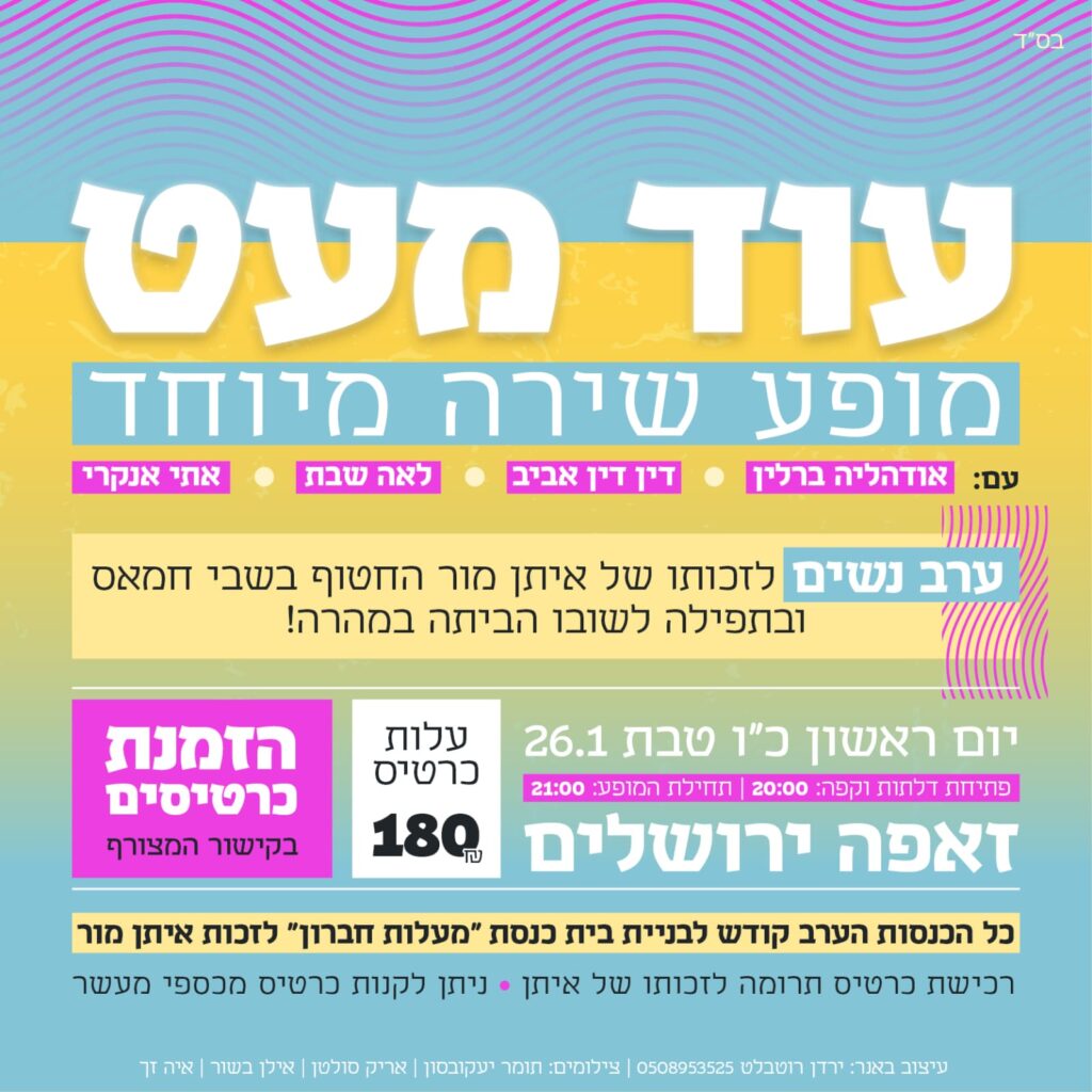 מוזמנות נשים יקרות, לרכוש כרטיסים (ההכנסות כאמור קודש לבניית בית הכנסת) להגיע, לשמוח, לשיר ולהרים את הלב לקבל את חסדיו של הקב"ה