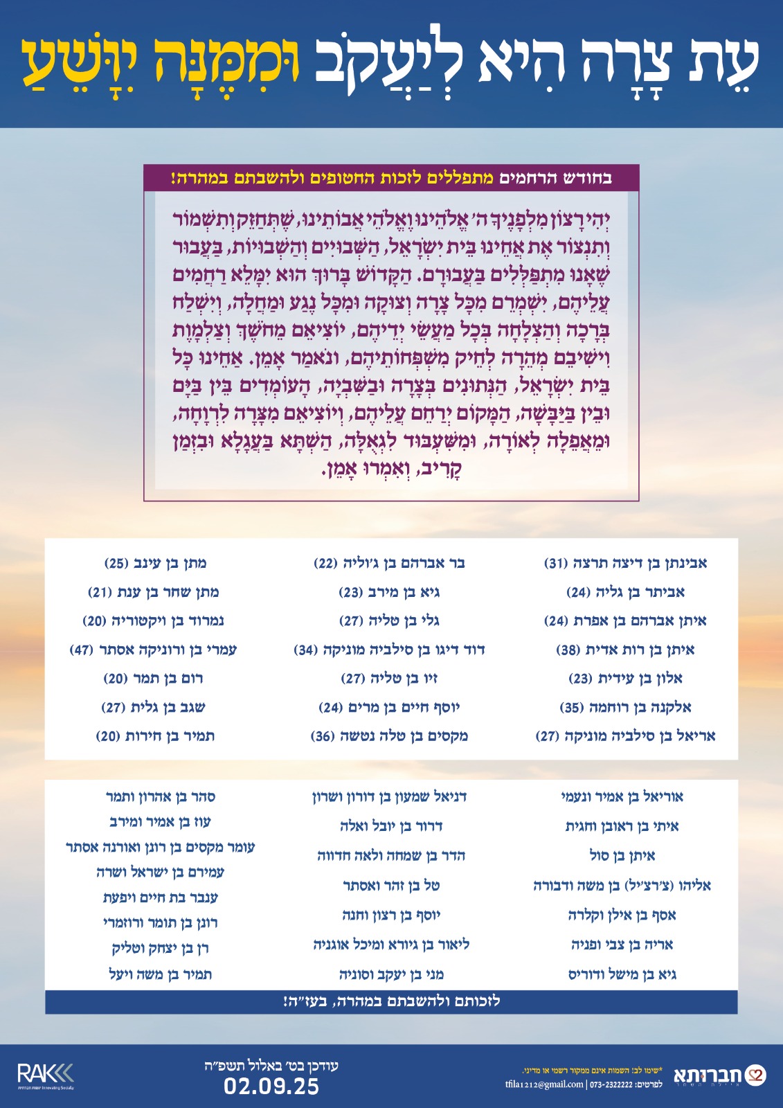 דף הבית » אמונה » מתפללים בעדם, במיוחד ביום כיפור: תפילה לשלום ולהשבת אחינו החטופים (מצורף קובץ שמות החטופים להורדה)