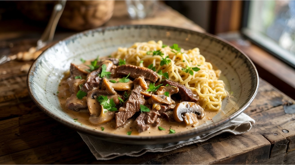 - מוסיפים מעט שמן ומבשלים כשעה וחצי-שעתיים עד לריכוך ובישול מלא, בחצי שעה האחרונה מוסיפים את הפטריות ומוסיפים תיבול ומים אם יש צורך.