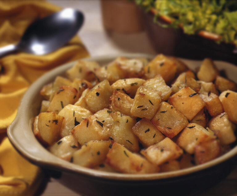 - האפיה משתנה לפי סוג התנור – המנה מוכנה כאשר הקצוות של הבטטה שחומות והיא רכה מבפנים.