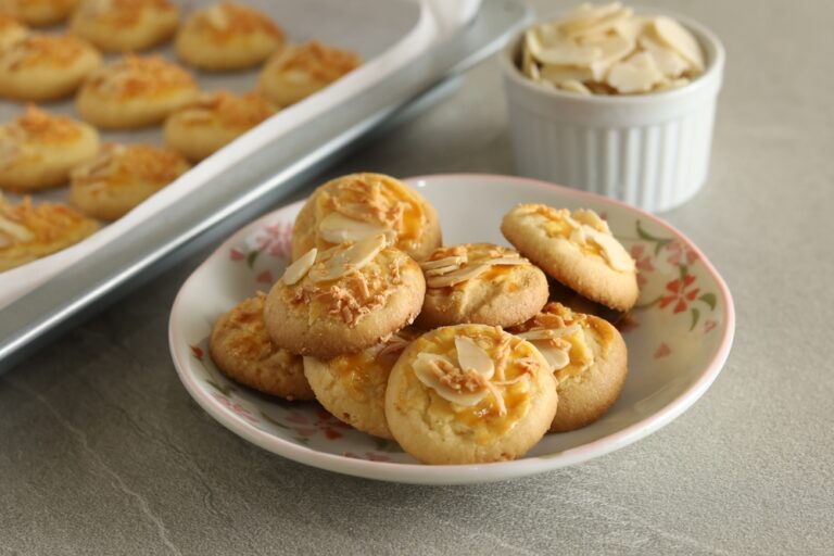- מוציאים ומסדרים כדורים על תבנית תנור מרופדת, אם רוצים, מקשטים את העוגיות עם פרוסות שקדים ומעט מלח גס