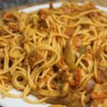 - מערבבים עם האורז ושופכים בתוך תבנית תנור מרופדת