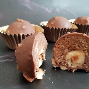 בלי אפייה ובמינימום מאמץ תוכלו להכין חטיף "פררו רושה" ביתי טעים ועסיסי. אלו בעצם כדורים מתוקים מצופים בשוקולד ואגוזי לוז, הם חטיף מושלם לאירוח מכבד:).