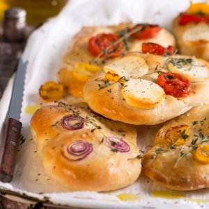 פוקאצ'ה איטלקית משובחת , מתאבן או פתיח לארוחה, הבצק המתובל טעים ניטרלי עם מלח גס, או עם תוספות של ירקות וגבינות לפי הטעם, מגישים לצד